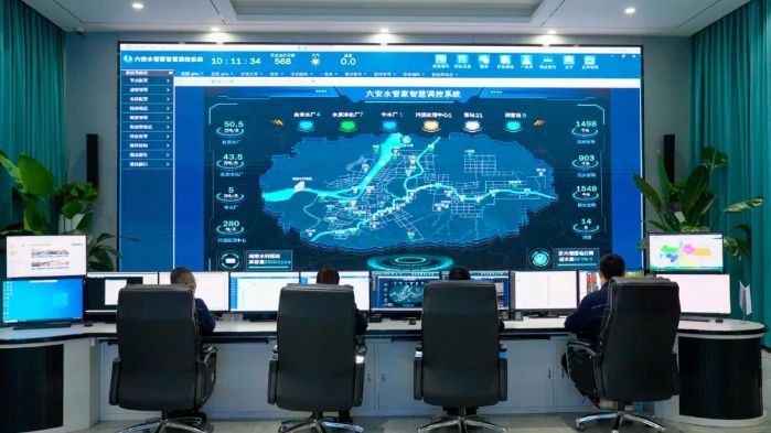 在安徽六安城北水質(zhì)凈化廠里,城區(qū)的27個泵站、7個水質(zhì)凈化廠、4座供水廠、5個調(diào)蓄池、1座中水廠、1座污泥處理中心,還有合計長達(dá)3950公里的供排水管網(wǎng),被“濃縮”在一張數(shù)字大屏的方寸之間。“大腦”的背后,5000多個傳感器分布在城市角落,眼觀六路、耳聽八方。