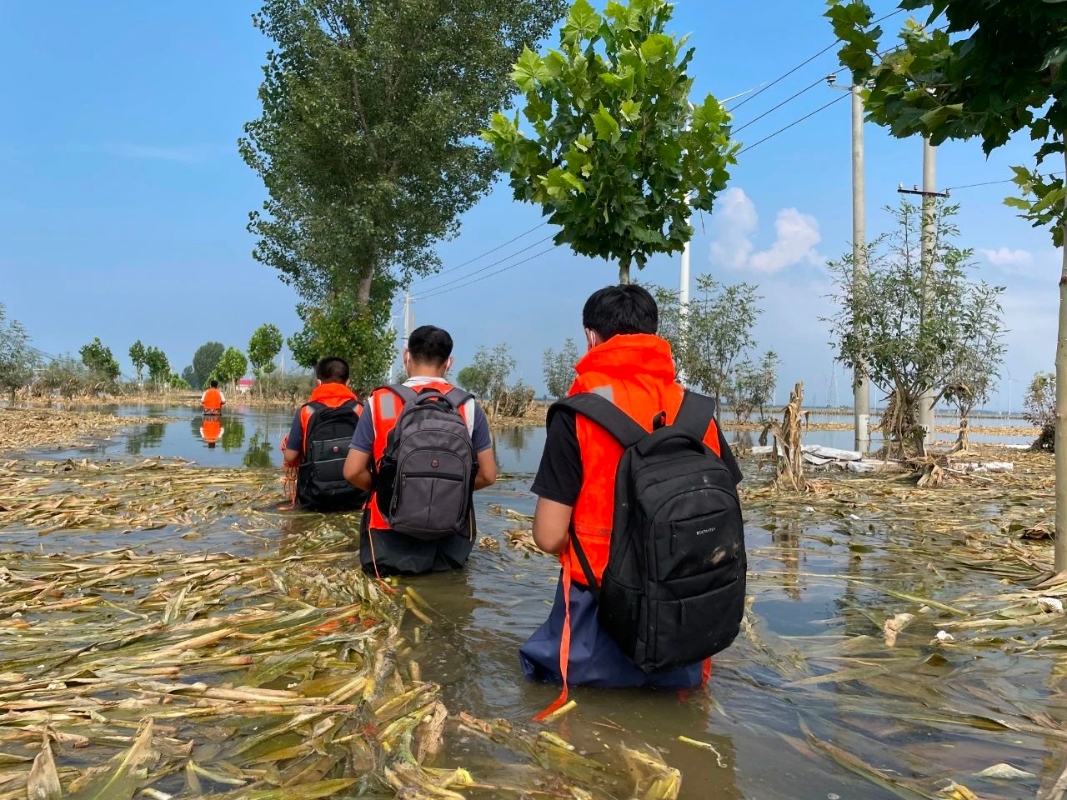 遇到漂浮物過(guò)多時(shí),宋要偉干脆跳進(jìn)及腰深的洪水,在艇前開(kāi)路。