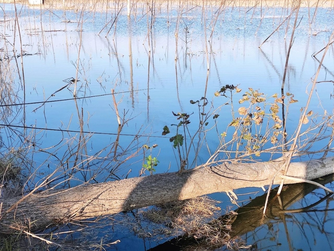 ▲ 洪水過(guò)后,水面上布滿樹(shù)木枝杈