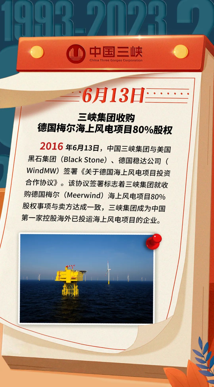 三峽·歷史上的今天丨三峽集團收購德國梅爾海上風(fēng)電項目80%股權(quán)(6月12日-6月18日)